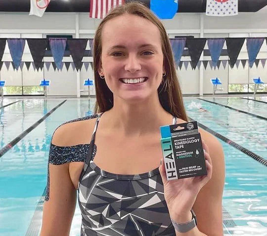 Heali tape has been a staple in her healthy training and recovery cycle. The unique designs of heali tape infuzed with methanol give her a cooling sensation to help with pain and burning caused by scoliosis, while the magnesium helps with her muscle tension from her uneven muscle patterns caused by her curved spine.